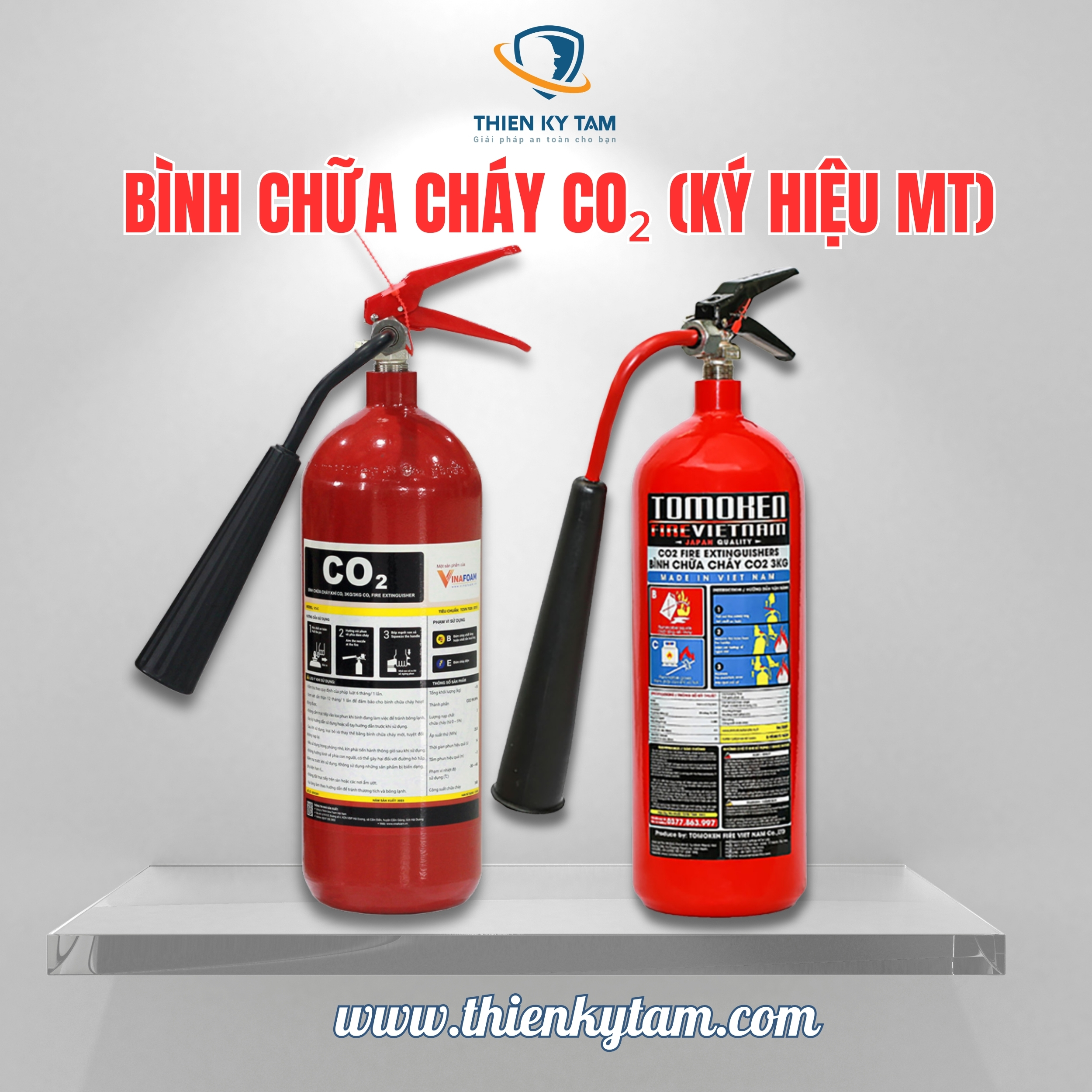 2. Bình chữa cháy CO₂ (ký hiệu MT) – Gọn gàng, sạch sẽ